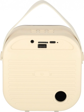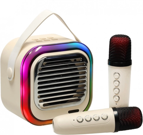 Deze crèmekleurige karaoke‑luidspreker tovert zowel de kinderkamer als de woonkamer om tot een klein podium. Draadloze Bluetooth‑connectiviteit zorgt voor snel koppelen met telefoon of computer, terwijl RGB‑lichteffecten elk optreden extra glans geven. Dankzij de twee microfoons geniet je van solo’s en duetten met vrienden.