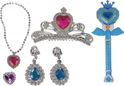 Betreed de wereld van fantasie met de interactieve toverstaf, die elke kamer in een magische sterrenhemel verandert. Druk op de knop en sprankelende lichtjes en sprookjesachtige melodieën beginnen. De set bevat ook oorbellen, een kroon, een ring en een ketting met gekleurde edelstenen.