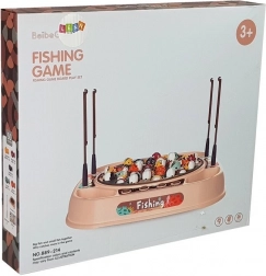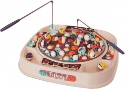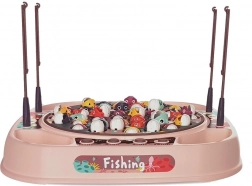 Het roze behendigheidsspel vissen vangen verandert elke middag in een vrolijke wedstrijd. Na het plaatsen van de batterijen begint de speelplaat te draaien, de visjes openen om de beurt hun bekjes en op het ritme van 3 vrolijke melodieën testen ze de snelheid en precisie van kleine vissers. Aan de zijkanten van de plaat vind je handige vakjes om je vangst in te leggen.