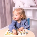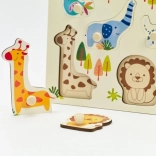 Deze houten puzzel is de ideale keuze voor kinderen die beginnen met het ontdekken van de dierenwereld. Dankzij de knoppen voor eenvoudig vastpakken en de stevige afwerking is het een geweldig hulpmiddel voor het ontwikkelen van motorische vaardigheden en differentiatievermogen bij kinderen vanaf 18 maanden.