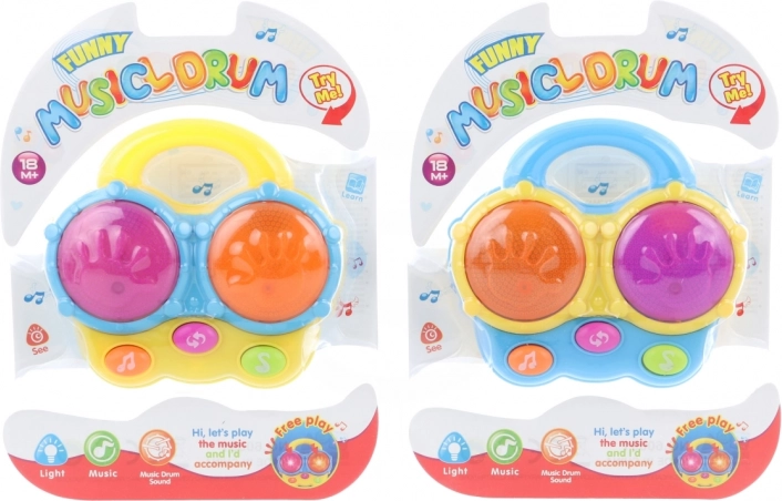 Leuke plastic drums voor kleine kinderen die bij het indrukken van de knoppen oplichten en vrolijke geluiden maken. Ideaal speelgoed voor de ontwikkeling van ritme en motoriek, met voeding op 2 AAA-batterijen (inbegrepen).