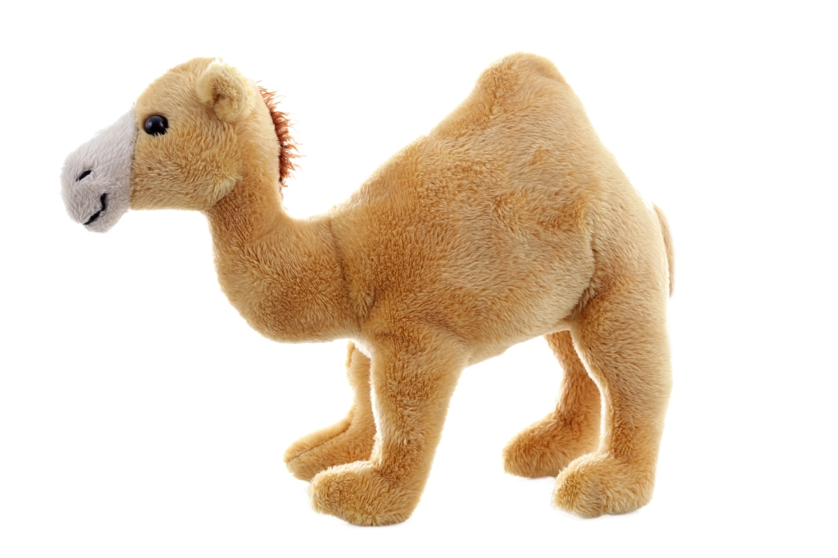Pluchen dromedaris met afmetingen 20×17×6 cm. Leeftijd 0+