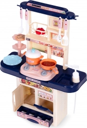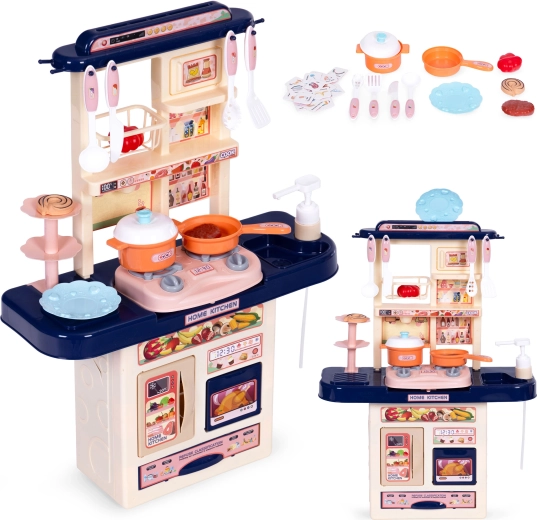De keuken heeft compacte afmetingen voor eenvoudige plaatsing in de kamer, openende kastjes en opbergruimte voor alle accessoires. Veilig, zonder scherpe randen, geschikt voor kinderen vanaf 3 jaar en groot genoeg om met meerdere kinderen tegelijk te spelen.