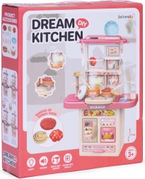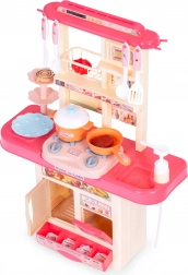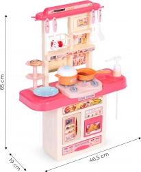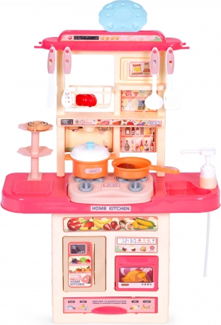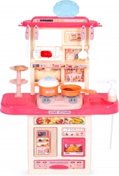 Deze kinderkeuken bootst een echte huishoudkeuken na en motiveert kinderen tot creatief rollenspel als kok. Bij het inschakelen van de kookpitten klinkt het kookgeluid en gaan de rode LED-lichten branden. Je kunt water in het reservoir gieten en via het pompje stroomt er water uit de kraan, wat de realiteit van het spel vergroot.