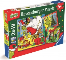 Ravensburger Puzzel Grinch 3x49 stukjes brengt plezier aan zowel kinderen als volwassenen met drie verschillende afbeeldingen, geweldige kwaliteit en meeslepend design.