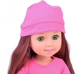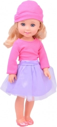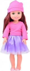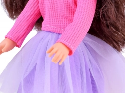 De elegante pop van 36 cm is een ideale metgezel voor jonge dames. Dankzij het lange, bruine, golvende haar dat kam- en stylebaar is, bevordert zij het modegevoel van kinderen en ontwikkelt zij vaardigheden in haarverzorging. Ze draagt een stijlvolle roze blouse en een paarse rok, en samen met roze schoentjes en een muts biedt ze een elegante uitstraling. Beweegbare armen en benen maken het eenvoudig om de pop in verschillende poses te zetten, wat creatief en fantasierijk spel ondersteunt.