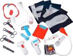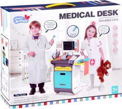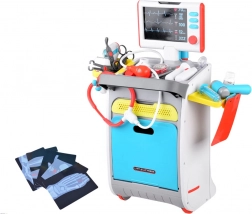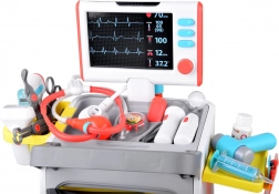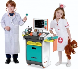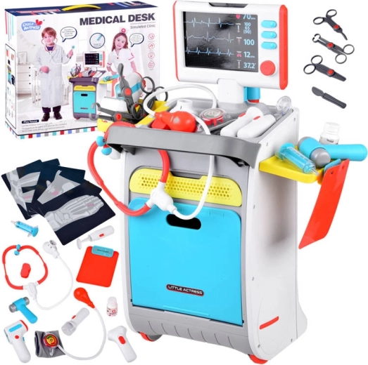 Complete doktersset voor kinderen op een verrijdbare kar biedt al vanaf 3 jaar een realistisch doktersspel. Bevat interactieve instrumenten, een ECG/röntgenmonitor met geluid, een spoelbak en instrumentensterilisator, opbergschappen en lades en een lengtemeter tot 112 cm. Stevige afwerking en vrolijke kleuren stimuleren creatief en leerzaam spel.