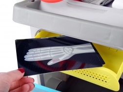 • Realistische accessoires: ECG/röntgenpaneel met geluid, lengtemeter, sterilisator, schappen en opbergvakken voor instrumenten.