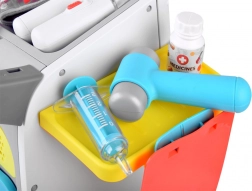 De set ontwikkelt de fijne motoriek, verbeelding en sociale vaardigheden tijdens het spelen met vriendjes. De verrijdbare constructie maakt het mogelijk de “ambulance” door de kamer te verplaatsen en alle doktersbenodigdheden altijd bij de hand te hebben.