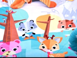 De set bevat stoffen diertjes met verschillende texturen en geluiden, een zonnetje met rustgevende melodie, een spiegeltje en een zacht kussentje ter ondersteuning van het hoofdje of tijdens tummy time. De mat ondersteunt het herkennen van vormen en kleuren, het leren van oorzaak–gevolg en de coördinatie van bewegingen.