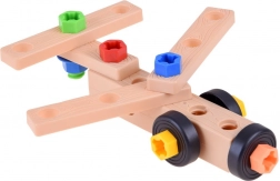 Een brede selectie latjes met gaten, schroeven, moeren en wielen laat kinderen alles bouwen van eenvoudige modellen tot meer complexe constructies.