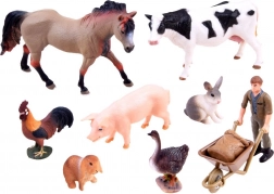 Inhoud van de set: koe, paard, haan, biggetje, haasje, konijn, gans en boer met kruiwagen. Elk figuur is handbeschilderd en klaar om eindeloze scènes en verhalen te creëren.