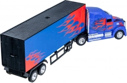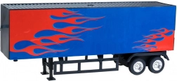 Vrachtwagen met oplegger op afstandsbediening is de droom van elke kleine chauffeur. Deze Amerikaanse stijl trekker met blauw-rode kleurcombinatie en vlammen is licht en wendbaar dankzij de kunststof carrosserie. Het gedetailleerde ontwerp en de multifunctionele bediening zorgen voor geweldig speelplezier.