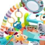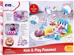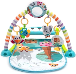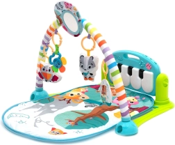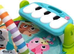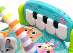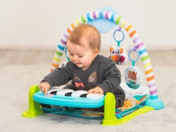 De interactieve piano met lichteffecten en melodieën motiveert kinderen om met voetjes en handjes te bewegen. Hangspeeltjes, rammelaars en een babysafe spiegeltje ontwikkelen zicht, gehoor en tast en ondersteunen de oog-handcoördinatie. De mat is zacht, aangenaam aan te raken en gemakkelijk te onderhouden.