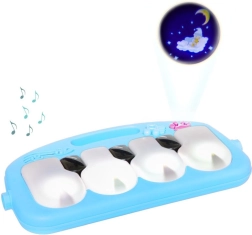 De universele speelmat met piano biedt je baby een veilige en prikkelende omgeving voor dagelijkse ontdekkingen. Dankzij het veelzijdige ontwerp pas je hem makkelijk aan de huidige ontwikkelingsfase aan – van comfortabel liggen, via tummy time, tot zitten aan een mini interactief tafeltje. De geïntegreerde projector projecteert een maantje en sterretjes die kalmeren en helpen bij het inslapen.