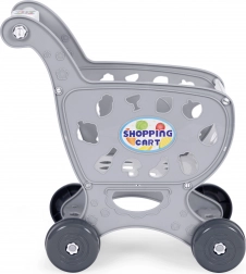 Grijze kinderwinkelwagen voor spelen in de supermarkt of keuken + 18 accessoires