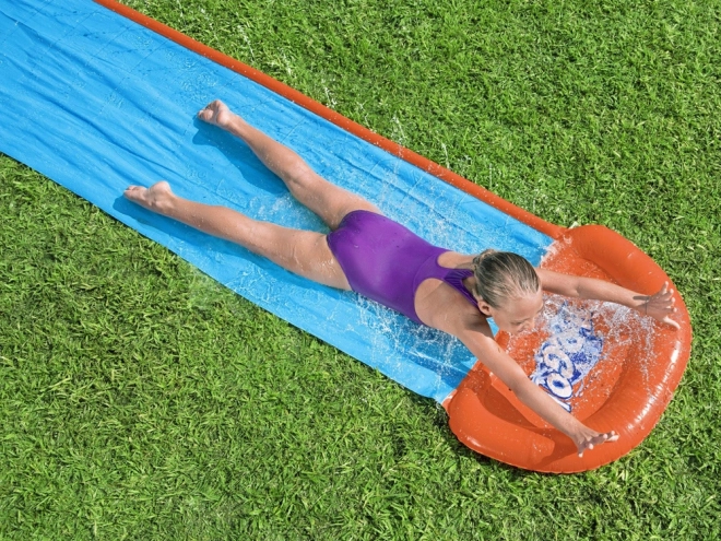 Waterglijbaan Tsunami van Bestway is ontworpen om maximaal plezier te bieden dankzij de lange gestructureerde glijbaan, die over de gehele lengte wordt besproeid door waterstralen.