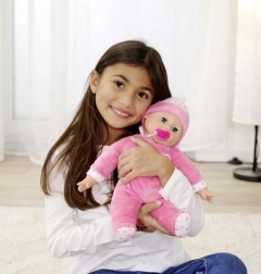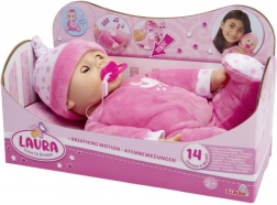 De schattige interactieve pop Laura is de ideale speelkameraad voor rollenspellen in het gezin. Ze heeft een zacht lichaam, realistische ademhalingsbewegingen, 14 kindergeluiden en een wiegeliedje, sluit haar ogen wanneer ze slaapt en reageert op de Try Me-functie. Inclusief roze speen en afneembare kleertjes.