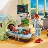 Radioloog met patiënt tijdens een MRI-onderzoek. De set bevat een MRI-apparaat met tafel, diagnostische monitor en veel extra accessoires. Je kunt hem combineren met andere PLAYMOBIL-ziekenhuissets. Dankzij de gedetailleerde PLAYMOBIL-set kunnen kinderen een bezoek aan de radioloog naspelen. Net als in het echte leven wordt de patiënt op een speciale tafel in de MRI geplaatst.