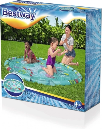 Bestway watermat met douche is ideaal plezier voor het hele gezin dat tijdens hete zomerdagen verkoeling zoekt. Het biedt plezier voor kleine en grote kinderen die graag springen, dansen of spetteren in het water.