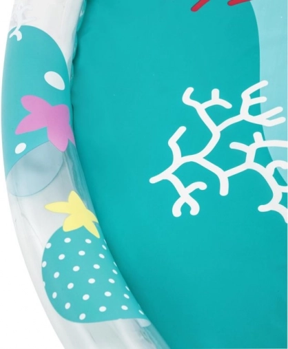 - Mat in de vorm van een ondiep peuterbad met een opblaasbare rand die het water vasthoudt.