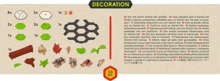- 33 bouw- en decoratieve onderdelen (inclusief figuren van Simba, Pumbaa en Timon en een grote boomstam)