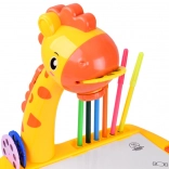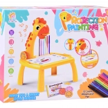 Een schattige tekenprojector in de vorm van een giraffe projecteert voorbeelden op papier, tafel of muur en helpt kinderen eenvoudig over te trekken en te kleuren. Inclusief een tekentafeltje, 12 stiften, 3 sets dia’s (dieren, fruit en groente, voertuigen) en praktische houders voor accessoires – ideaal voor de ontwikkeling van creativiteit en fijne motoriek.