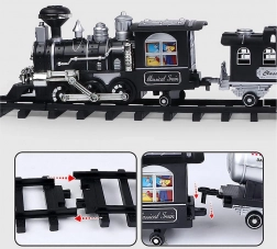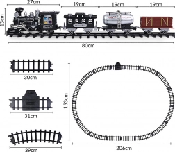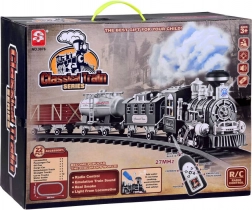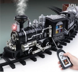 Dit uitstekende model van een treinstel is uitgerust met een afstandsbediening en biedt spectaculaire ritten vooruit en achteruit. De locomotief licht op en blaast rook uit de schoorsteen, wat bijdraagt aan de authenticiteit van de rit. Geluidseffecten simuleren realistische trein geluiden zoals fluiten, kletteren van wielen op de rails en bellen. Het model is het ideale cadeau voor alle treinset fans.