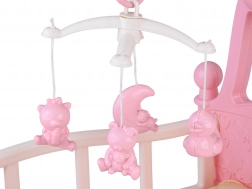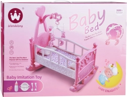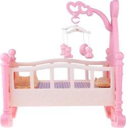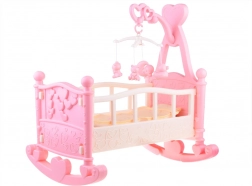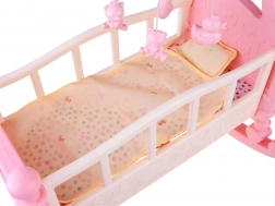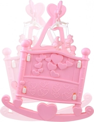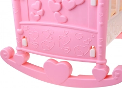 Mooie wieg voor poppen maakt elke kleine moeder blij. Het is versierd met hartjes en bevat een mobiel en enkele nuttige accessoires. Dit speelgoed helpt kinderen bij het ontwikkelen van zorgzaamheid, verantwoordelijkheid en fijne motoriek.