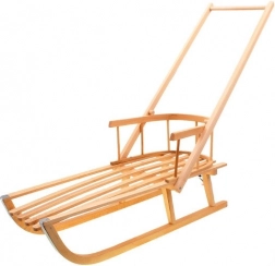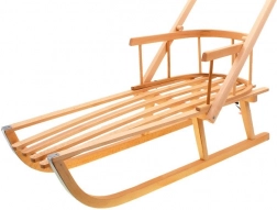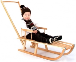 Onze sleeën zijn ideaal voor winterplezier. Volledig gemaakt van gelakt hout, bieden zij een comfortabele en veilige zitplaats met rugleuning voor het kind. Sterke metalen glijders dragen bij aan hun stabiliteit en het gemakkelijk glijden op sneeuw.