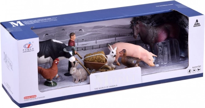 Deze set biedt kinderen een authentieke boerderij-ervaring. De realistisch vormgegeven figuren zoals een koe, paard, biggetje, haas, eend, kip en konijn worden aangevuld met een boer met kruiwagen. De met de hand beschilderde details en de prettige afmetingen zorgen voor comfortabele grip en langdurig speelplezier.