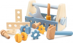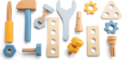 De set bevat 16 functionele onderdelen: een hamer, schroevendraaier, sleutel, spijkers, schroeven en tandwielen voor eindeloze speelmogelijkheden. Vervaardigd uit FSC-gecertificeerd hout, een duurzame keuze voor ouders én de planeet.