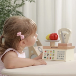 Kinderen maken zich op natuurlijke wijze de basis van wiskunde eigen – ze leggen “boodschappen” op de schaal, volgen de aanwijzer en tellen op het paneel met cijfers.