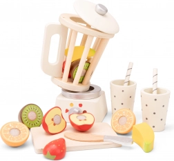 De set bevat vijf soorten fruit (banaan, aardbei, appel, sinaasappel en kiwi), elk verdeeld in twee helften die je met het houten mes op de snijplank kunt “snijden”. Twee bekers met rietjes zijn perfect om de “smoothies” te serveren. De hoge kwaliteit van het hout en de aangename kleuren zorgen voor veilig en langdurig speelplezier voor kinderen vanaf 3 jaar.