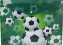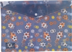 Praktische plastic map met druksluiting van 35,8 × 26 cm die je A4-documenten veilig beschermt. Ideaal voor school en kantoor, met aantrekkelijke sportmotieven met een bal en een comfortabele druksluiting. Biedt snelle toegang, bescherming tegen kreukels en vocht en 4 verschillende designs voor elke sportliefhebber.
