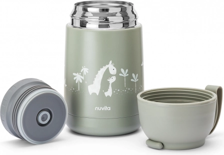 Thermosfles van roestvrij staal is de ideale metgezel voor wandelingen of uitstapjes met kinderen. Dankzij de dubbelwandige constructie en vacuümisolatietechnologie houdt hij maaltijden tot 12 uur warm en drankjes tot 24 uur koud. De fles heeft een luchtdichte schroefdop met overdrukventiel, die lekkage voorkomt en een stabiele temperatuur garandeert. De praktische dop kan als bekertje worden gebruikt en de brede opening maakt reinigen gemakkelijk. De verstelbare siliconen handgreep maakt het comfortabel om aan een kinderwagen te bevestigen, terwijl de antislip siliconen bodem bestand is tegen krassen.