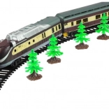 - Locomotief, 4 wagons, rails met wissels, bomen