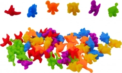 De set bevat een gevarieerde verzameling kleurrijke dinosaurussen en zes bekers in heldere kleuren waarin kinderen hun dinosaurussen kunnen plaatsen. Voor het spel is er ook een speciale pincet inbegrepen, die kinderen helpt de dinosaurussen te verplaatsen en op kleur te sorteren. Dit versterkt de motorische vaardigheden en de coördinatie.