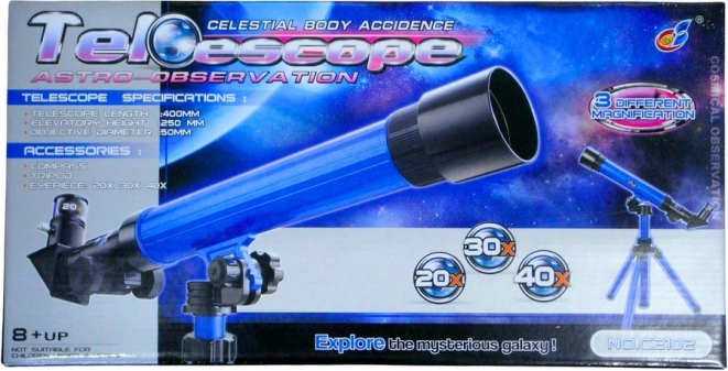 De educatieve kindertelescoop heeft een objectief met een diameter van 50 mm en biedt vergrotingen van 20x, 30x en 40x, waarmee nauwkeurige en gedetailleerde hemelobservaties mogelijk zijn. De scherpstel functie maakt het mogelijk om het beeld naar wens helder in te stellen, wat het comfort en de kwaliteit van het observeren verhoogt.