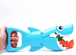 De plastic haai is de hoofdrolspeler van het spel, met een beweegbare kaak om de visjes te vangen.