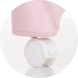 Dankzij de 4 wieltjes verplaatst u het stoeltje moeiteloos; ingeklapt neemt het minimale ruimte in – ideaal voor elk huishouden.