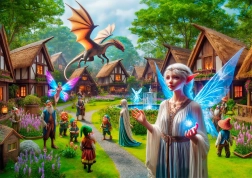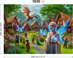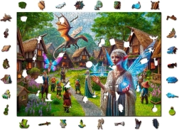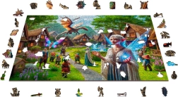 Ontdek de magische wereld met de houten puzzel Fantasy dorp, die je betovert met laser-gesneden stukjes in de vorm van dieren en plezier brengt voor het hele gezin.