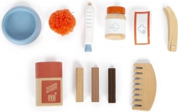 De praktische tas met ventilatienet en opbergvakken houdt alle accessoires netjes bij elkaar. De hoogwaardige afwerking van een combinatie van hout, kunststof en textiel zorgt voor een lange levensduur en veilig speelplezier. Inclusief veermechanische injectiespuit, pincet, verband en andere accessoires voor realistische zorg.