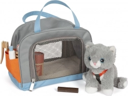 Deze rijk uitgeruste set bevat alles wat kinderen nodig hebben om hun pluchen lieveling te verzorgen. De kat met tuigje kan reizen in de comfortabele draagtas met matje, en wanneer nodig hebben kinderen hulpmiddelen bij de hand voor voeren, verzorgen en knuffelen. Het spelen voor kleine dierenartsen ontwikkelt op speelse wijze empathie en verantwoordelijkheidsgevoel.