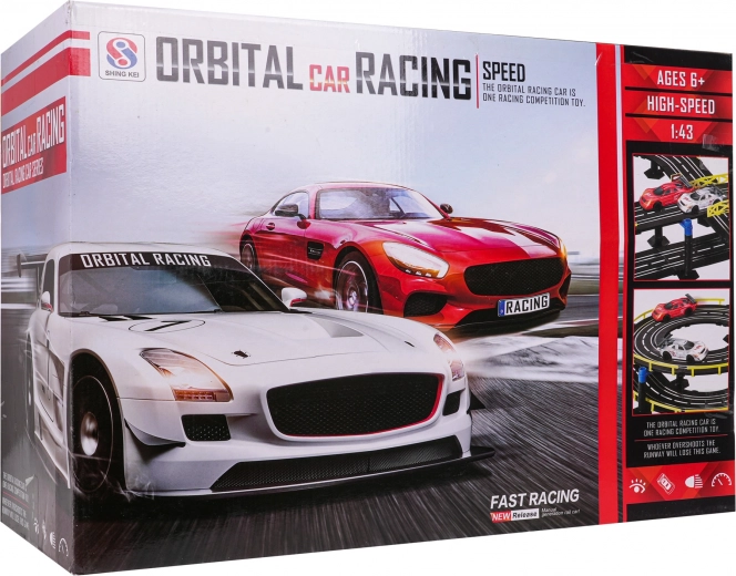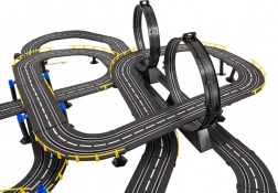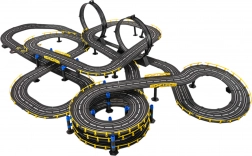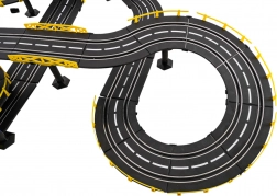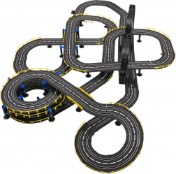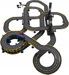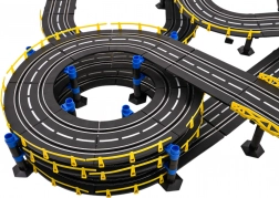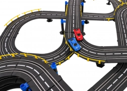 . | Grote racebaan in schaal 1:43 met twee radiografisch bestuurde autootjes voor kinderen vanaf 3 jaar. De afzonderlijke bouwdelen maken het mogelijk een baan te bouwen met scherpe bochten, spiralen en rechte stukken, alles voor maximaal plezier en extra spanning tijdens het spel. Deze unieke set is het ideale speelgoed voor kleine autosportliefhebbers. De baan is uitgerust met een rondeteller. Voeding: 220 V - 50 Hz. |