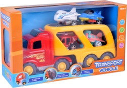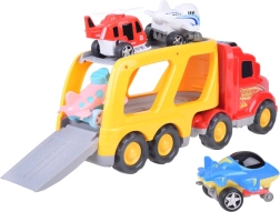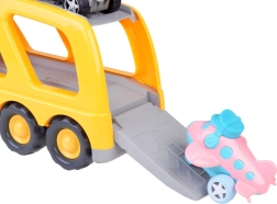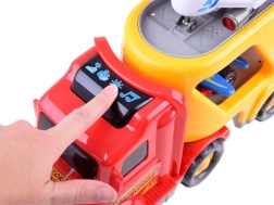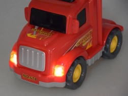 Deze grote kindertrekker met oplegger is ideaal voor kleine chauffeurs en piloten. Dankzij de frictie-aandrijving hoef je het speelgoed slechts over een glad oppervlak te duwen en het rijdt weg. Op het dak van de cabine zit een knop die realistische motor- en claxongeluiden en lichteffecten activeert, waardoor spelen nog leuker wordt.