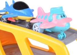 De set bevat drie vliegtuigen en een helikopter die eenvoudig kunnen worden geladen via de uitklapbare oprijplaat. De robuuste kunststof in levendige kleuren is veilig en duurzaam voor dagelijks speelplezier.