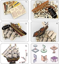 Ontdek het plezier van creëren met het gedetailleerde 3D-model van het beroemde Britse oorlogsschip HMS VICTORY uit de jaren 1759–1765. De puzzel is ontworpen om eenvoudig te monteren zonder gereedschap, terwijl hij realistische details van zeilen, masten en dek biedt.