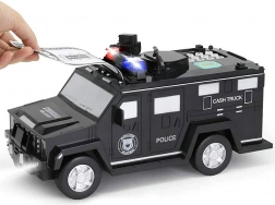 Leuk en veilig sparen voor kinderen! De politieauto met vingerafdrukscanner (simulatie), numeriek toetsenblok en automatische bankbiljetinvoer helpt kinderen leren sparen. Bij het inwerpen van geld gaan de lampen aan en klinken geluiden. Elektronische spaarpot met pincode, licht- en geluidseffecten en mogelijkheid tot het inwerpen van munten en bankbiljetten is een geweldig cadeau voor kleine politieagenten.