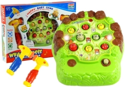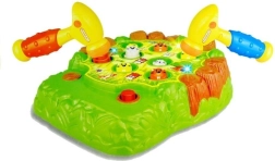 De set bevat een groen-bruin plastic bord met kleurrijke dierenkoppen en twee hamers, waardoor twee spelers tegelijk kunnen spelen. De kleurrijke afbeeldingen van dieren en planten op het bord spreken elk kind aan, dat zich met dit spel nooit zal vervelen. Kinderen hebben niet alleen plezier, maar leren ook nieuwe vaardigheden, zoals het herkennen van kleuren en geluiden.